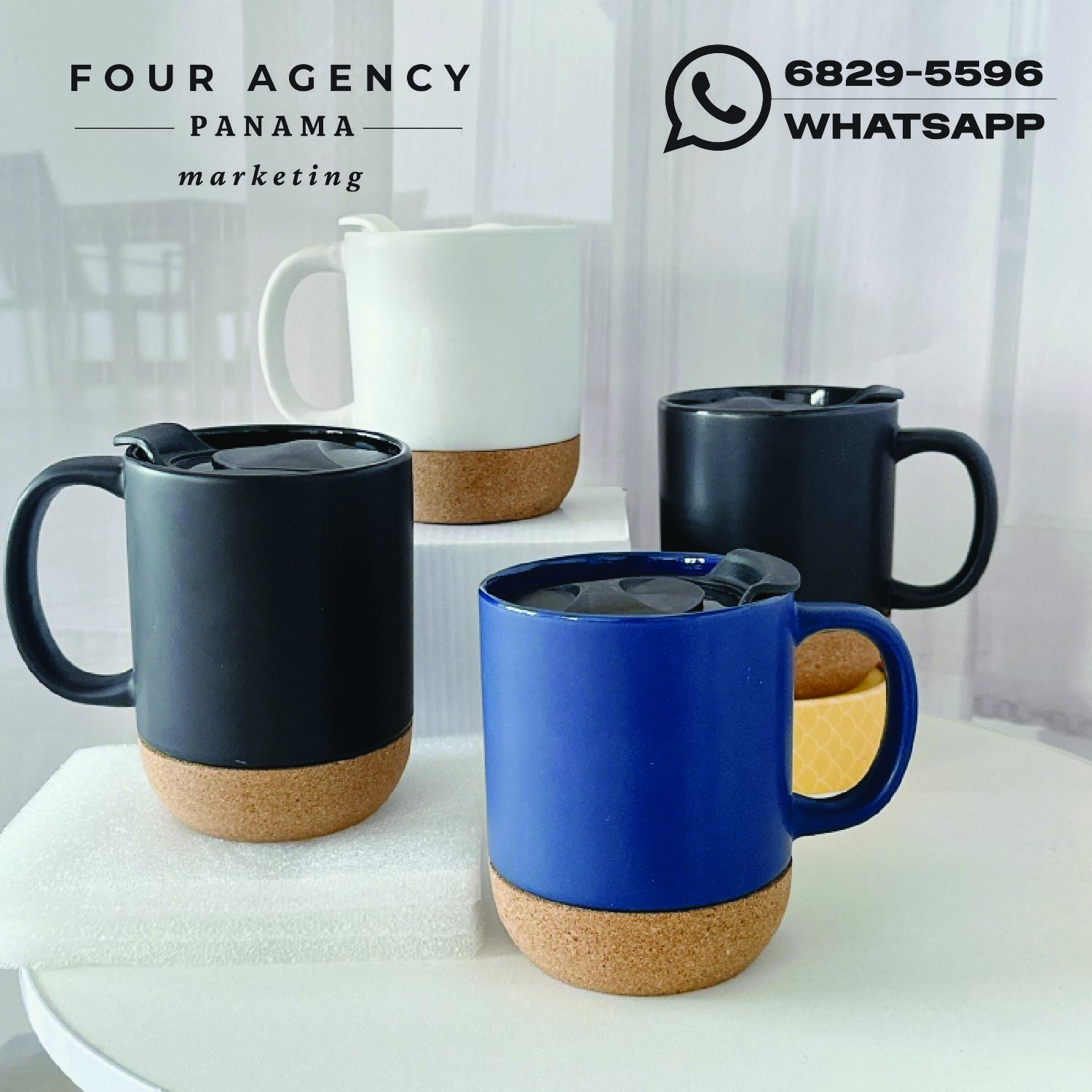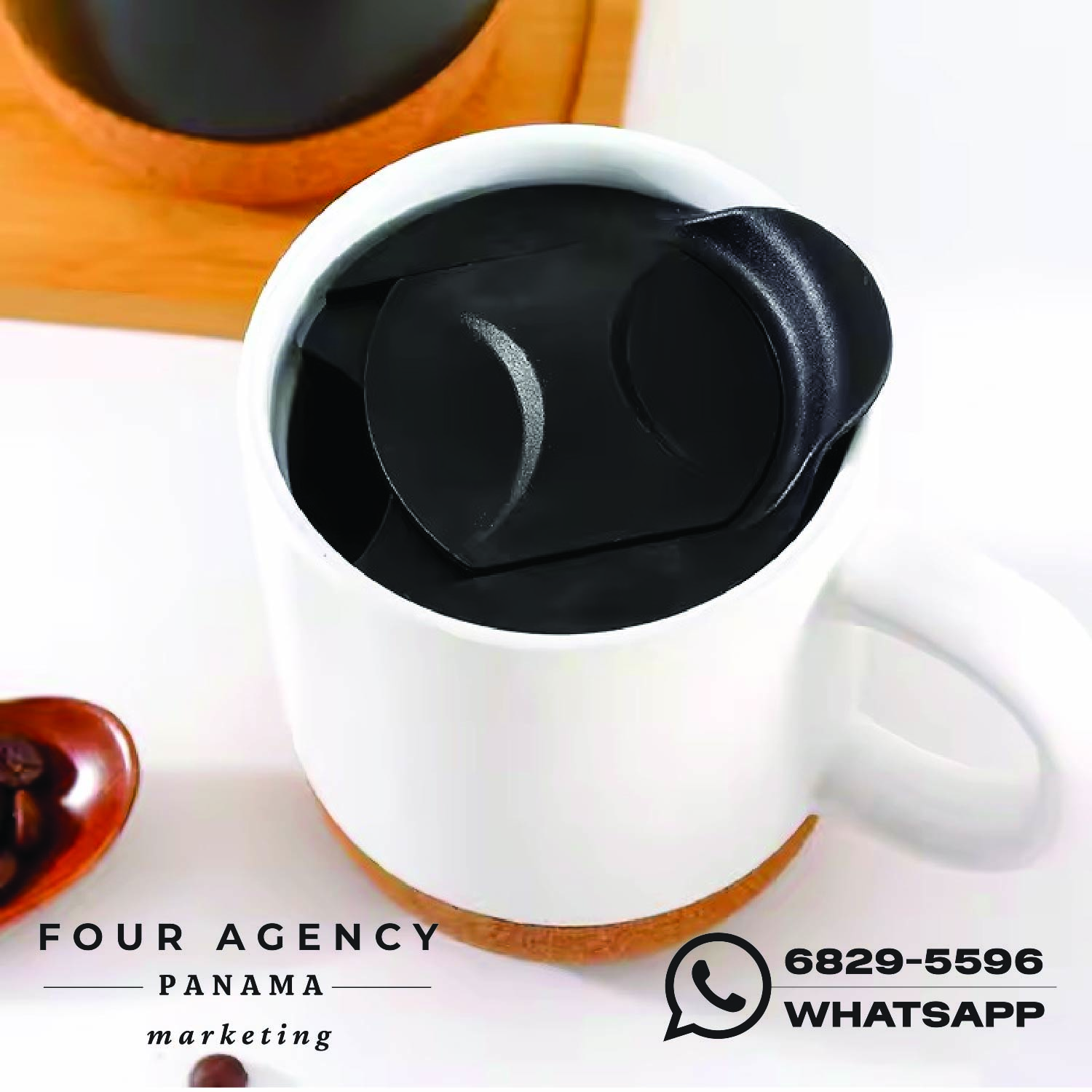 Combina diseño moderno, funcionalidad y alto valor promocional. Su base de corcho le aporta un acabado distintivo y natural, mientras que su estructura de cerámica garantiza resistencia y durabilidad para el uso diario.